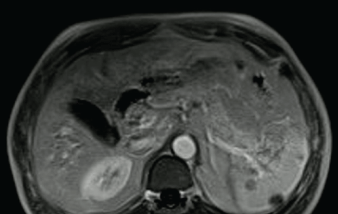 Figure 2: a,b) Confirmed splenic lesions by abdominal magnetic resonance imaging.