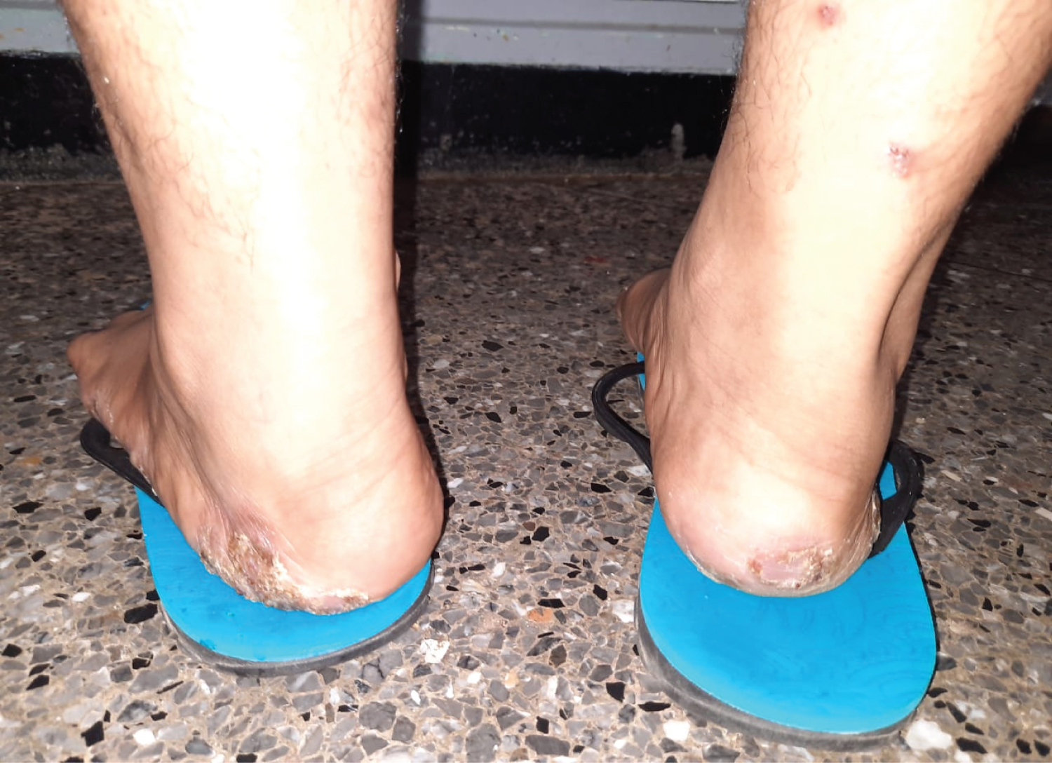 Figure 2: Maculopapular lesions with scratch marks located in the lower extremities.