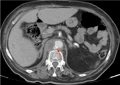 Figure 1: Mycotic Aneurysm (CT scan with intravenous contrast).