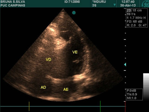 Due to investigation, the patient presented with a simple x-ray of the chest (Figure 1) an increase of the cardiac area in posterolateral projection. An echocardiogram showed measurements of normal cardiac chambers, walls and ventricular function. An extrahepatic, homogeneous structure was identified, with minimum measurements of 13 × 13 mm, with infiltration of the interventricular septum, adhered to the pericardium, with increased refraction leading to cardiac displacement (Figure 2).
