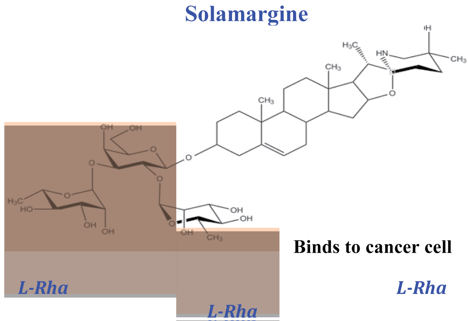Solamargine in Curaderm, through its rhamnose content (Figure 1 highlighted area) selectively identifies and binds to cancer cells.
