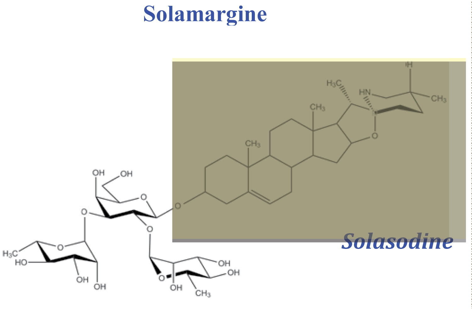 Figure 1: Chemical structure of solamargine, the main anticancer ingredient in Curaderm. The rhamnose sugar moiety (highlighted area) selectively identifies and interacts with specific rhamnose binding proteins (RBP) that are located on the surface of cancer cells.