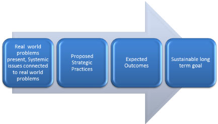 Figure 1: Four steps structure to evolve the strategic framework for real world problems and long term outcomes.