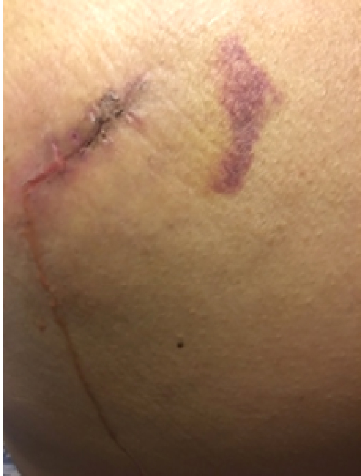 Her urinalysis was negative and her post-void residual was 5 ml. She was diagnosed with OAB and was refractory to behavioral therapy and anti-muscarinic agents. The patient was then offered Sacral Neuromodulation. She underwent a stage I lead placement on October 28th, 2017. After reporting greater than 50% symptom improvement she underwent the stage II operation on November 17th, 2017.
