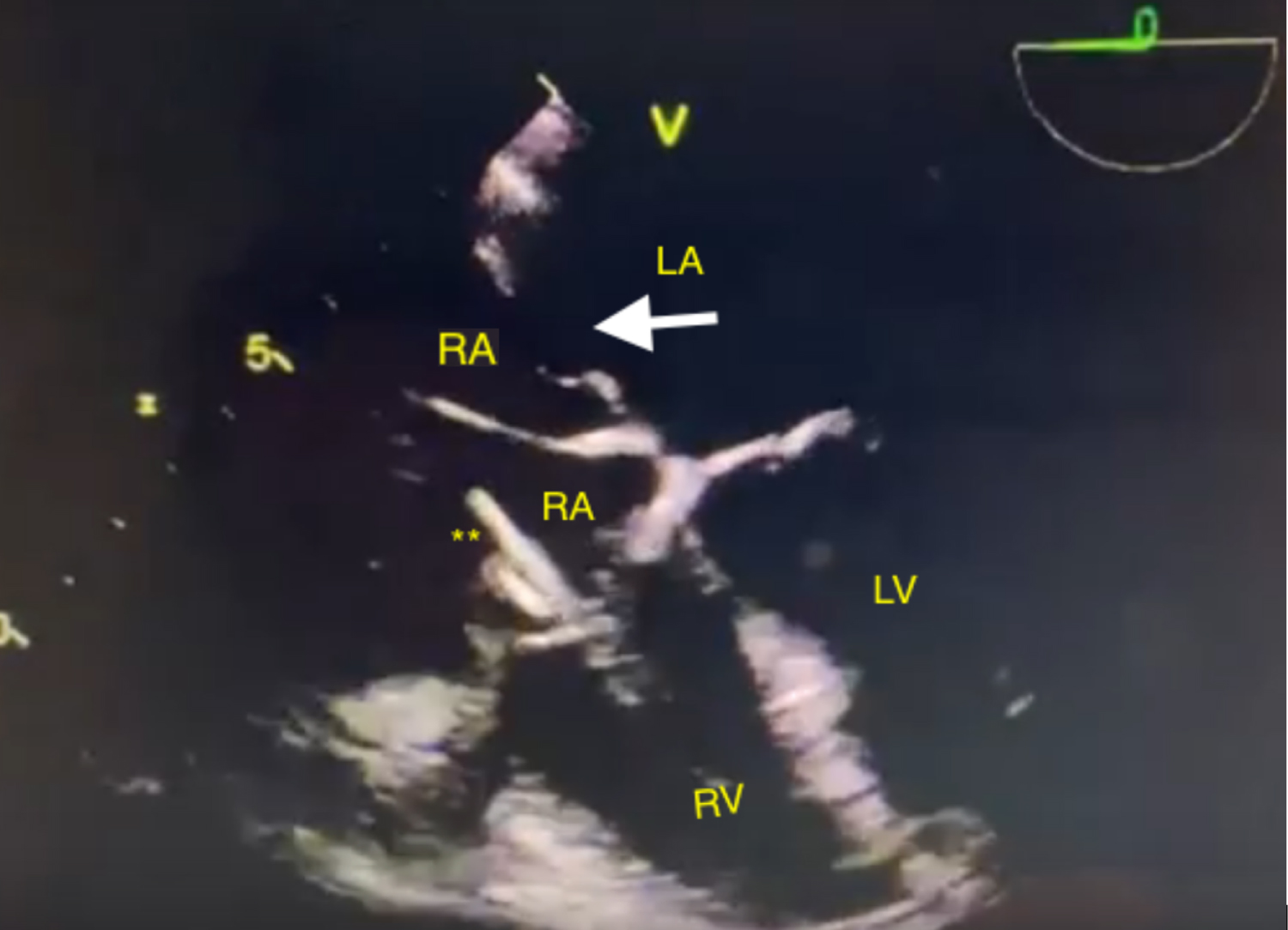 Figure 1: Transesophageal Echocardiogram demonstrating Cor Triatriatum Dexter with a patent foramen ovale.