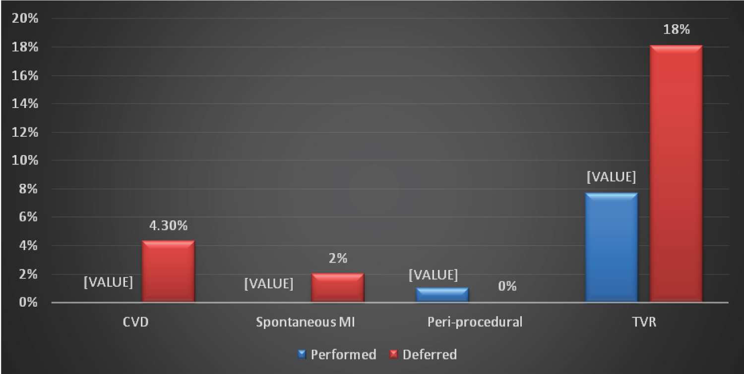 To compare between effectiveness of deferred vs. performed Percutaneous Coronary Intervention for coronary stenosis with grey-zone fractional flow reserve values.