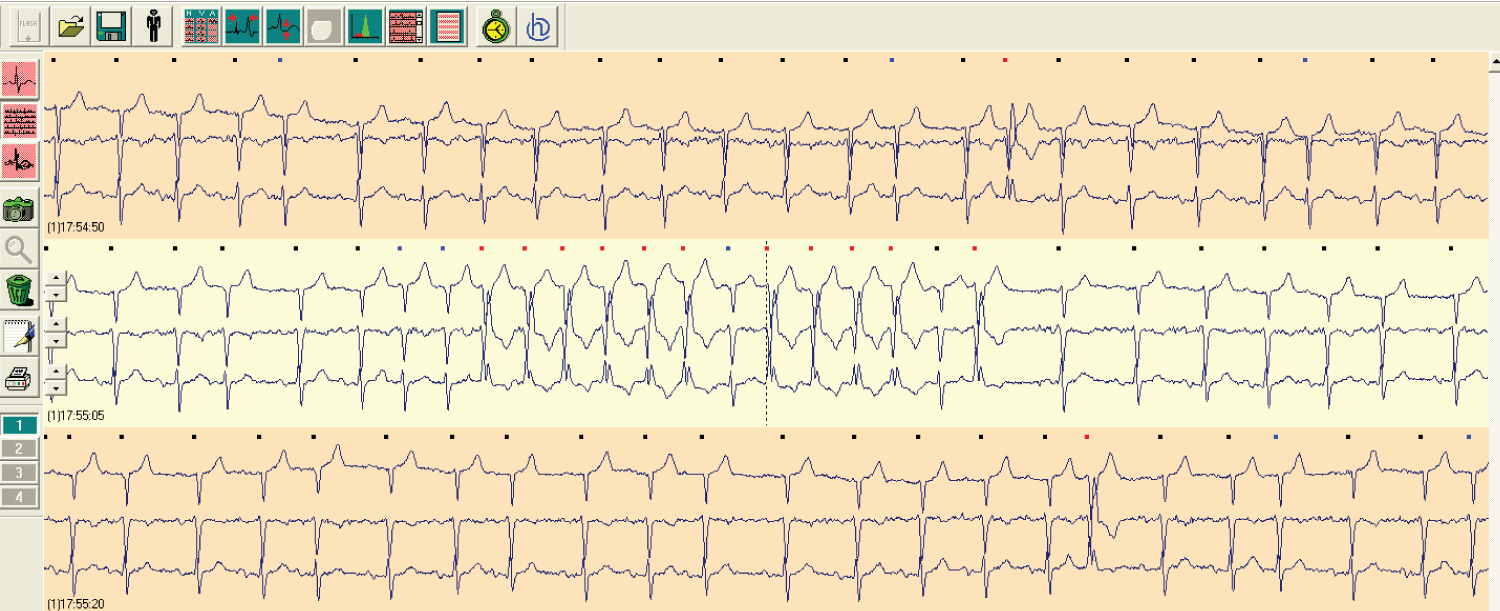 Figure 2: A short paroxysmal atrial fibrillation event on Holter EKG monitoring.