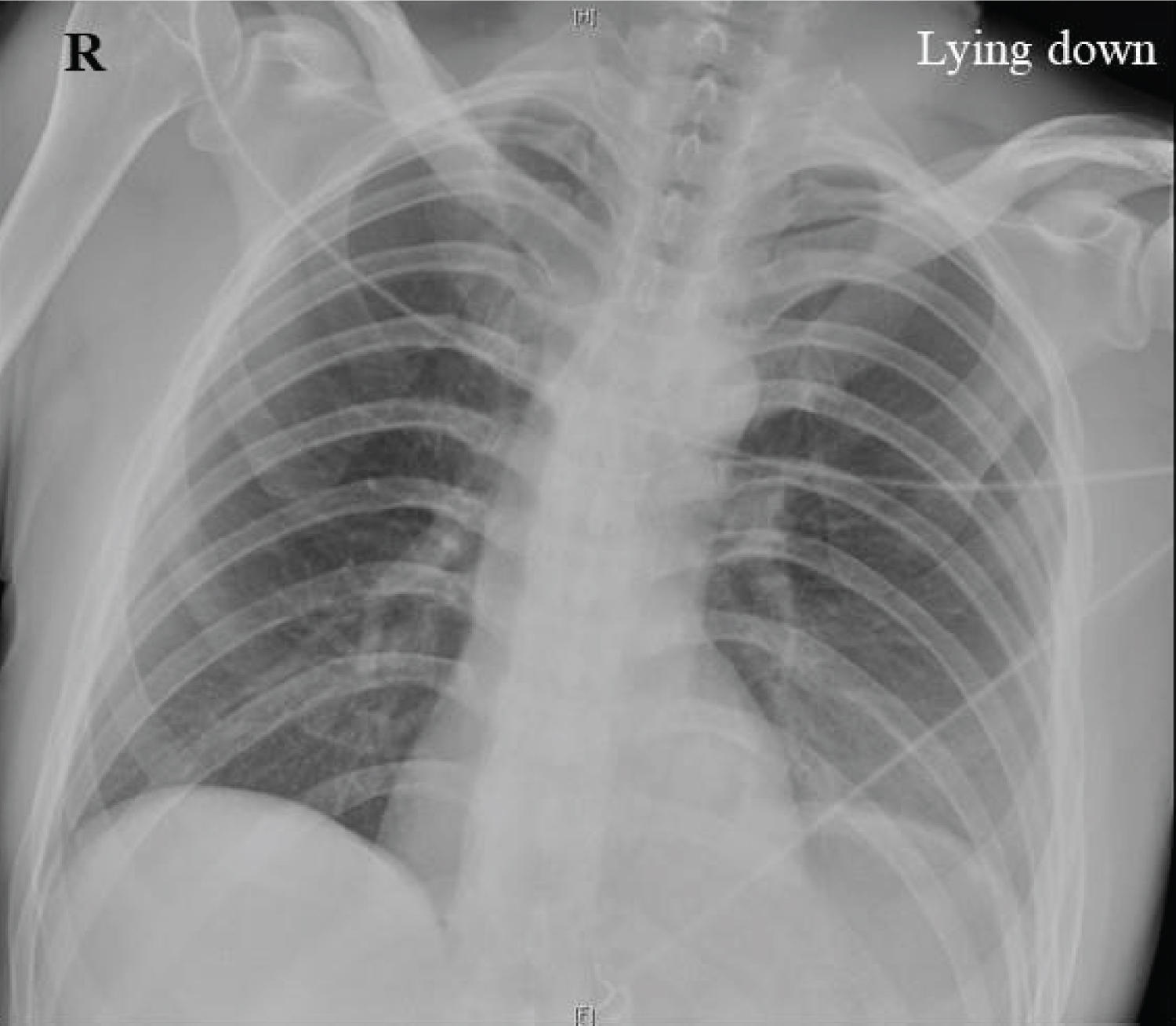 A male ages 40-50 years-old presented to the emergency department with chest pain with radiation for upper abdominal and left flank. As a personal history, of anxiety, in treatment with diazepam and duloxetine. There is no previous relevant history of gastrointestinal disease, and he did not have any preexisting disease and allergic history. His symptoms began suddenly after vomiting and he complained an intense pain (the pain score was 9 out of 10 based on the verbal rating scale). He also reported nausea, diaphoresis, and had no symptoms of severe acute respiratory syndrome. On admission, physical examination showed pale and sweaty skin, his initial vital signs were a blood pressure of 112/73 mmHg, heart rate of 135 beats per minute, respiratory rate of 25 breaths per minute, temperature of 36.2 °C, oxygen saturation 98% on room air. During the initial clinical examination, he was pale and sweaty and very complaining in the retrosternal and left lumbar region. Apart from the above signs, he had no other remarkable findings on systemic examination. A metabolic acidosis with high anion gap (pH 7.37, pCO 2 29 mmHg, pO 2 102 mmHg, bicarbonate 16.8 mmol/L, saturation 98.7%, anion gap of 14 mEq/L, lactate 1.4 mmol/L) was present on his initial blood gas. The initial chest X-ray showed no acute abnormalities Figure 1, most notably no pneumothorax or pneumomediastinum and 12-lead electrocardiogram showed a normal sinus rhythm. The patient's laboratory studies revealed a mild leukocytosis (14 10^3/uL) and C-reactive protein was below 1 mg/L. His renal and electrolyte profile was normal (creatinine of 1.5 mg/dl). There was no abnormal finding by the levels of cardiac biomarkers, pancreatic lipase and amylase, or D-dimer. To clarify the clinical case, a CT was performed, which showed left pneumothorax, anterior pneumomediastinum and indistinct esophageal wall with pneumomediastinum at just above the gastro-oesophageal junction, suggestive of esophageal rupture Figure 2 and Figure 3. General surgery was consulted and due to history of the present illness two sets of blood culture were collected and broad-spectrum antibiotics and antifungals with piperacillin/tazobactam and fluconazole were initiated, as well as analgesia and prokinetics. Faced with the diagnosis of with esophageal rupture, the patient was transferred to a referral center and submitted to surgical repair with placement of an esophageal prosthesis with clinical improvement. He was discharged home on the 12 th postoperative day. After one month’s follow-up consultation, the patient is well with no impairments.