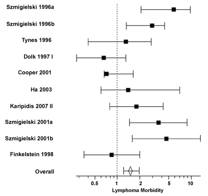 Figure 2: Lymphoma Morbidity. Risk of lymphoma increased in relation to MW/RF radiation exposure.
