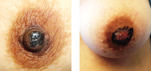 Gabbi TV, Valente NY, Castro LG (2006) Pigmented Paget disease of the nipple mimicking cutaneous melanoma: importance of the immunohistochemical profile to differentiate between these diseases. An Bras Dermatol 81: 457-460.