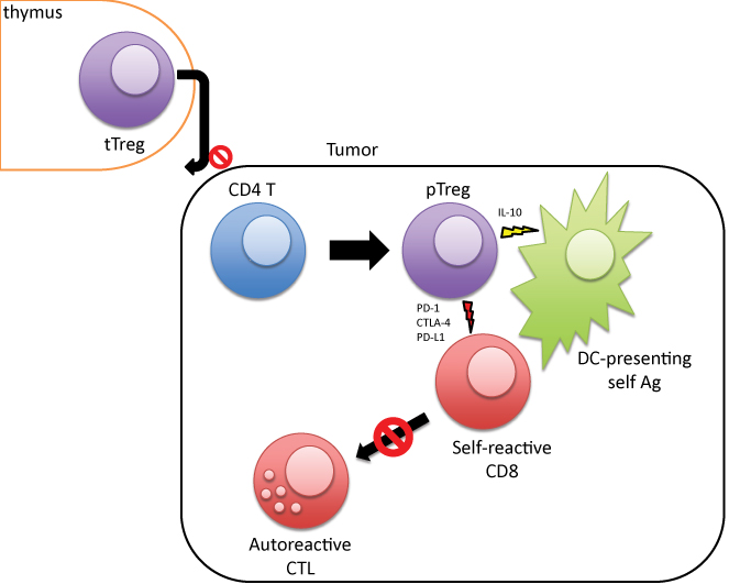 Figure 3: Induction of pTregs in tumor microenvironment and elimination of tumor specific CTL response.
