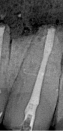 Figure 4a: Sample from group 2 after obturation with gutta-percha, resin sealer, and heat-softened gutta-percha.