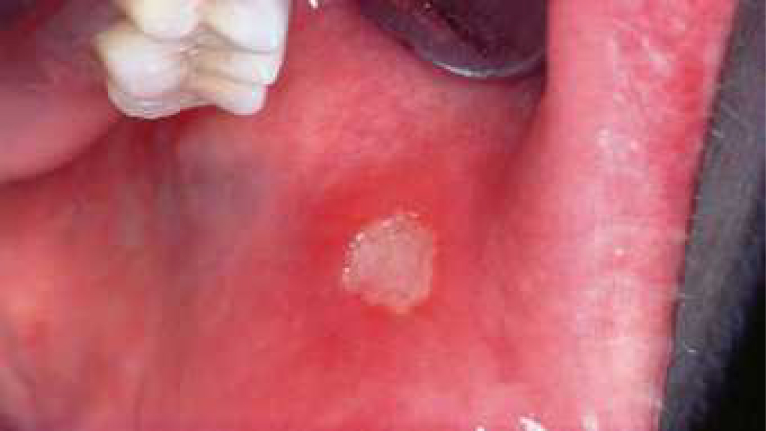 Figure 5: Aphthous lesion on the buccal mucosa, caused by NSAIDs.