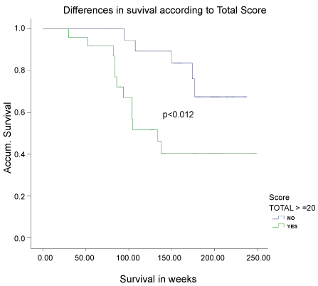 Figure 5: Kaplan-Meier survival curves depending on the Total Score.