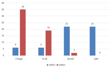 Figure 2: CRP levels at AECOPD and 21 days after. View Figure 2