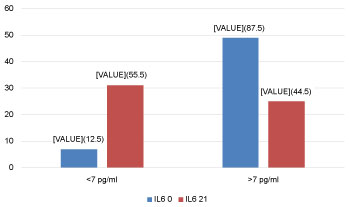 Determining Interleukin-6 (IL-6) in serum is used with the immunoassay with electrochemiluminescence "ECLIA" used in Elecsys and Cobas immonoassay analyzer. For evaluating marker IL6 level, cut off 7 pg/ml is used.