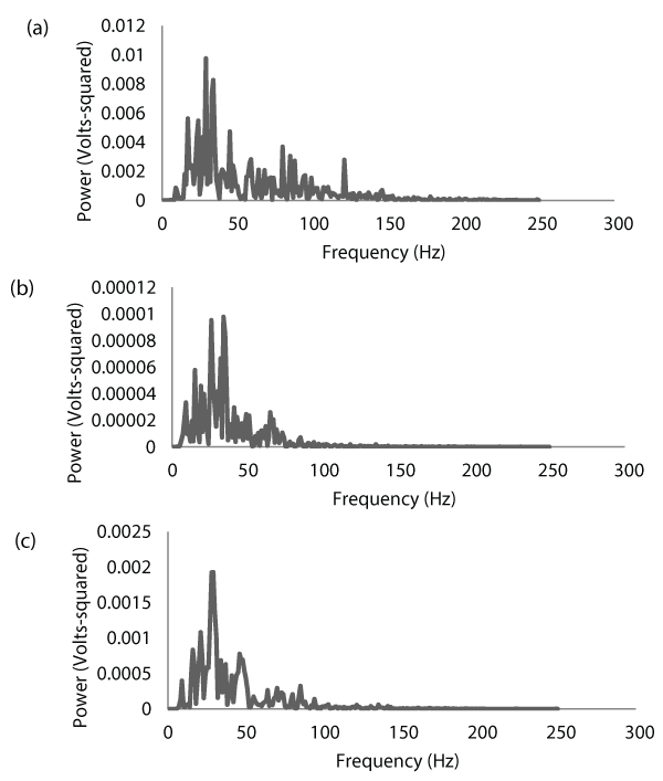 Figure 2: Electromyographic (EMG) power spectra for the biceps brachii (a)