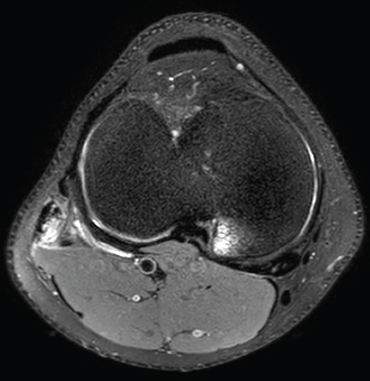 We also noted low level hyperintensity change through the Anterior Cruciate Ligament (ACL), which may reflect some local loculation of joint fluid in the notch or possibly a very low grade strain of the ACL (Figure 5).