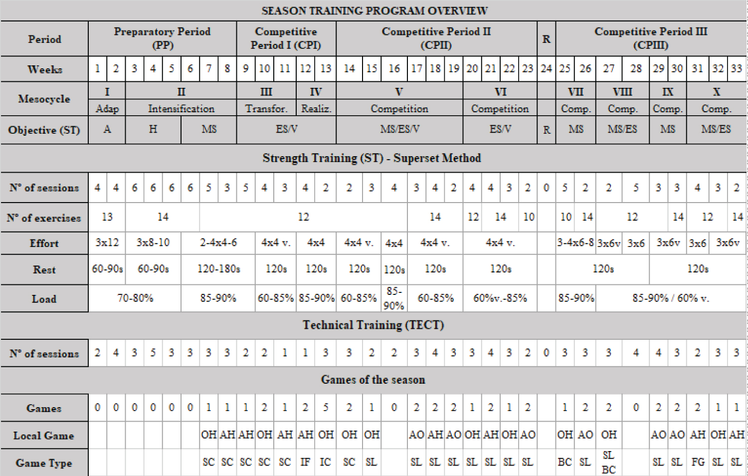 Figure 1: Training program overview during 33 weeks of a season in volleyball.