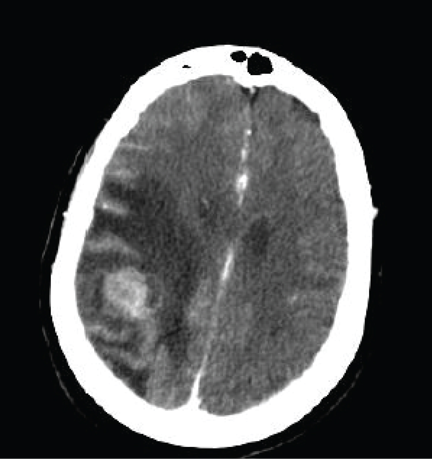 Figure 1: Right parietal mass in CT.
