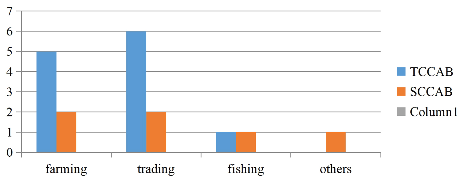 In terms of occupation, trading accounted for the highest percentage of those with CAB (44%) with farmers having 39% (Figure 2).