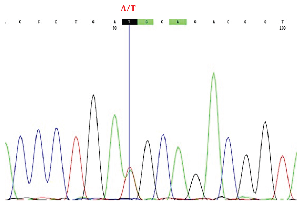 Figure 2: Sanger sequence chromatogram showing a novel homozygous missense mutation in exon 7 of the MFN2 gene, [MIM: 609260]: c.587C > T [NP_055689.1: p.Met234Lys] associated with hereditary motor and sensory neuropathy.
