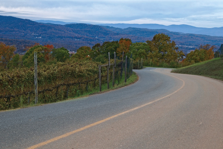 Figure 1: This shows that the extremely steep road, necessitating frequent braking, from the paved top of the mountain is brown from dust, whereas the road going up is gray.