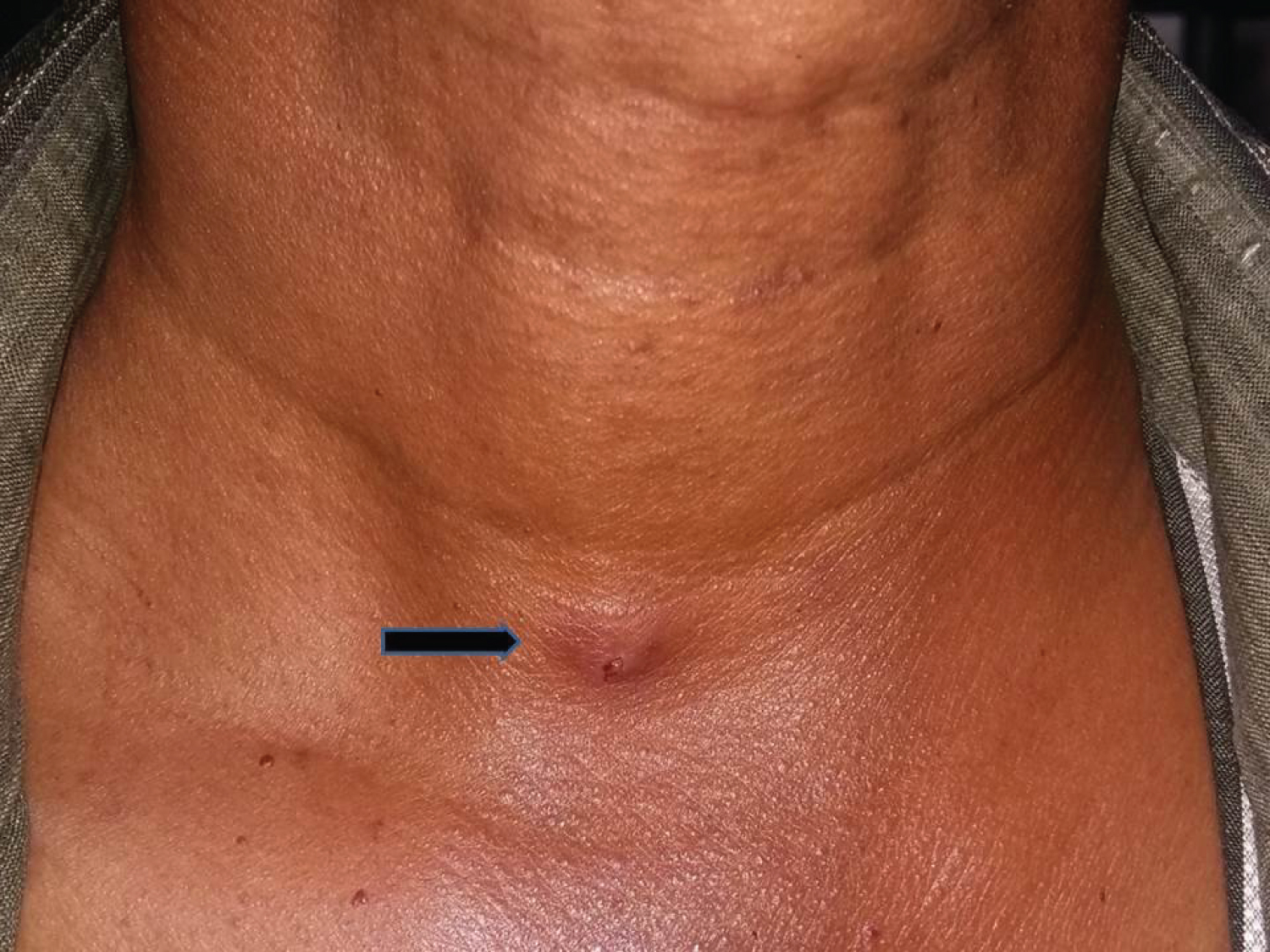 Figure 1: 0.5*0.5 cm swelling in front of the neck.