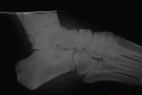 Figure 4: X-ray showing chondrolysis in talusnavicular and navicular cuneiform joints.