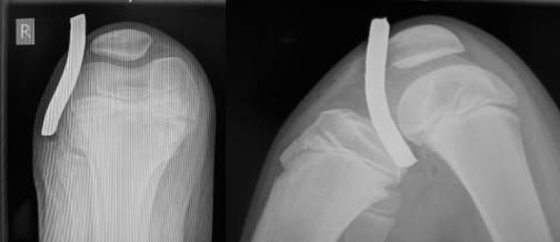 Foreign body, Joint, Knee, Open wound, Penetrating wound, Extra synovial